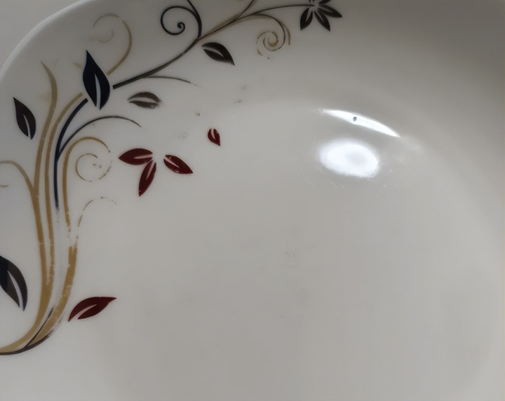 在高温的情况下,釉上彩工艺的餐具会出现脱落的可能,从而进入到食物里面,可别不当回事。